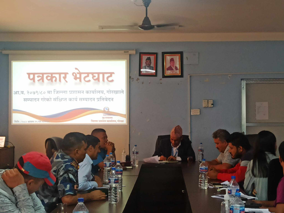 आ.व. २०७९/८० मा जिल्ला प्रशासन कार्यालय, गोरखाले सम्पादन गरेको संक्षिप्त कार्य सम्पादन प्रतिवेदन प्रस्तुतीकरण तथा पत्रकार भेटघाट कार्यक्रम
