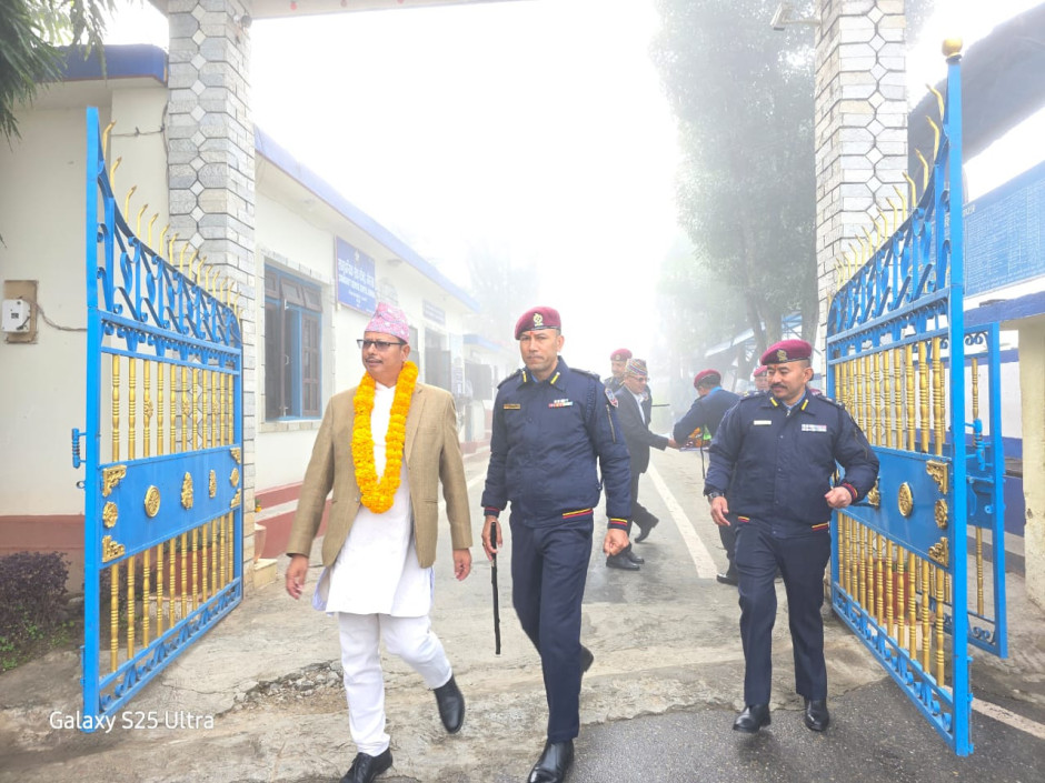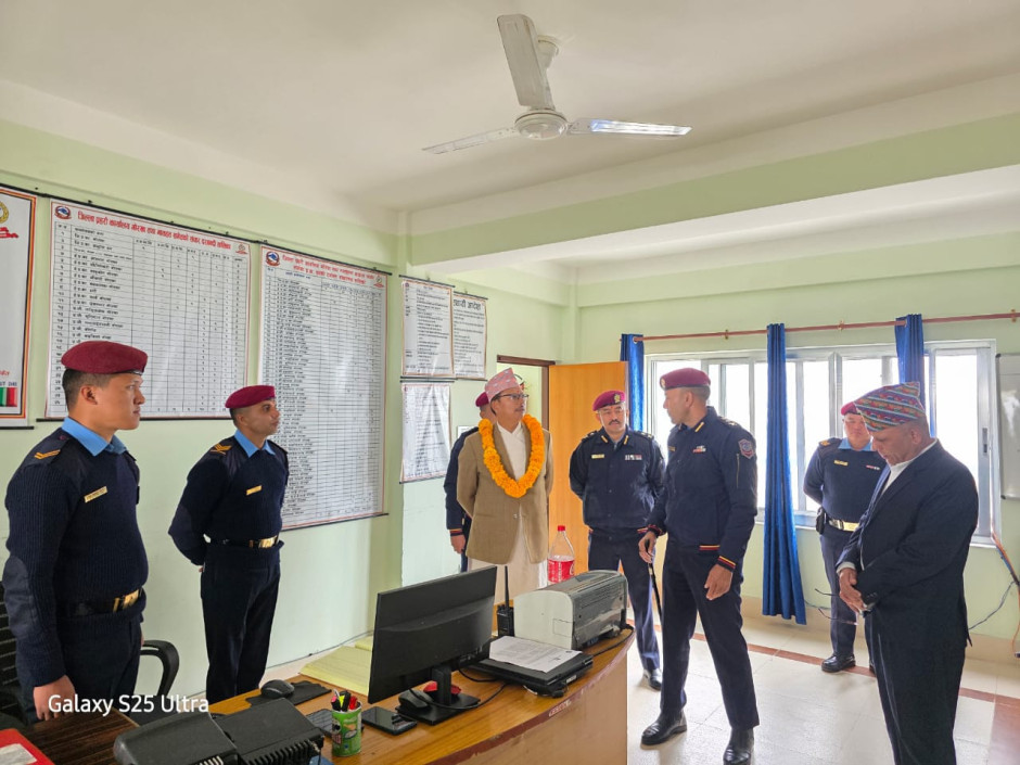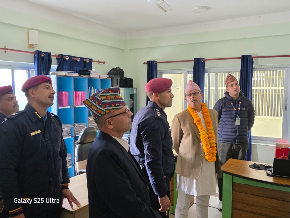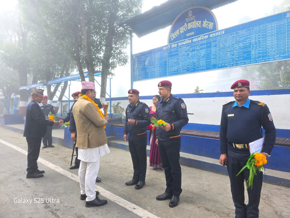 मिति २०८२/०८/०४ गतेका दिन प्रमुख जिल्ला अधिकारी श्री तुलसी बहादुर श्रेष्ठज्यू सहित सहायक प्रमुख जिल्ला अधिकारी श्री नेत्र प्रसाद शर्माद्वारा जिल्ला प्रहरी कार्यालय, गोरखाको स्थलगत निरीक्षण सम्पन्न भयो।
