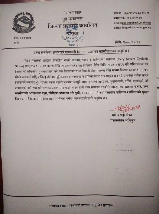 जिल्ला प्रशासन कार्यालय गाेरखाकाे पछिल्लाे सूचना