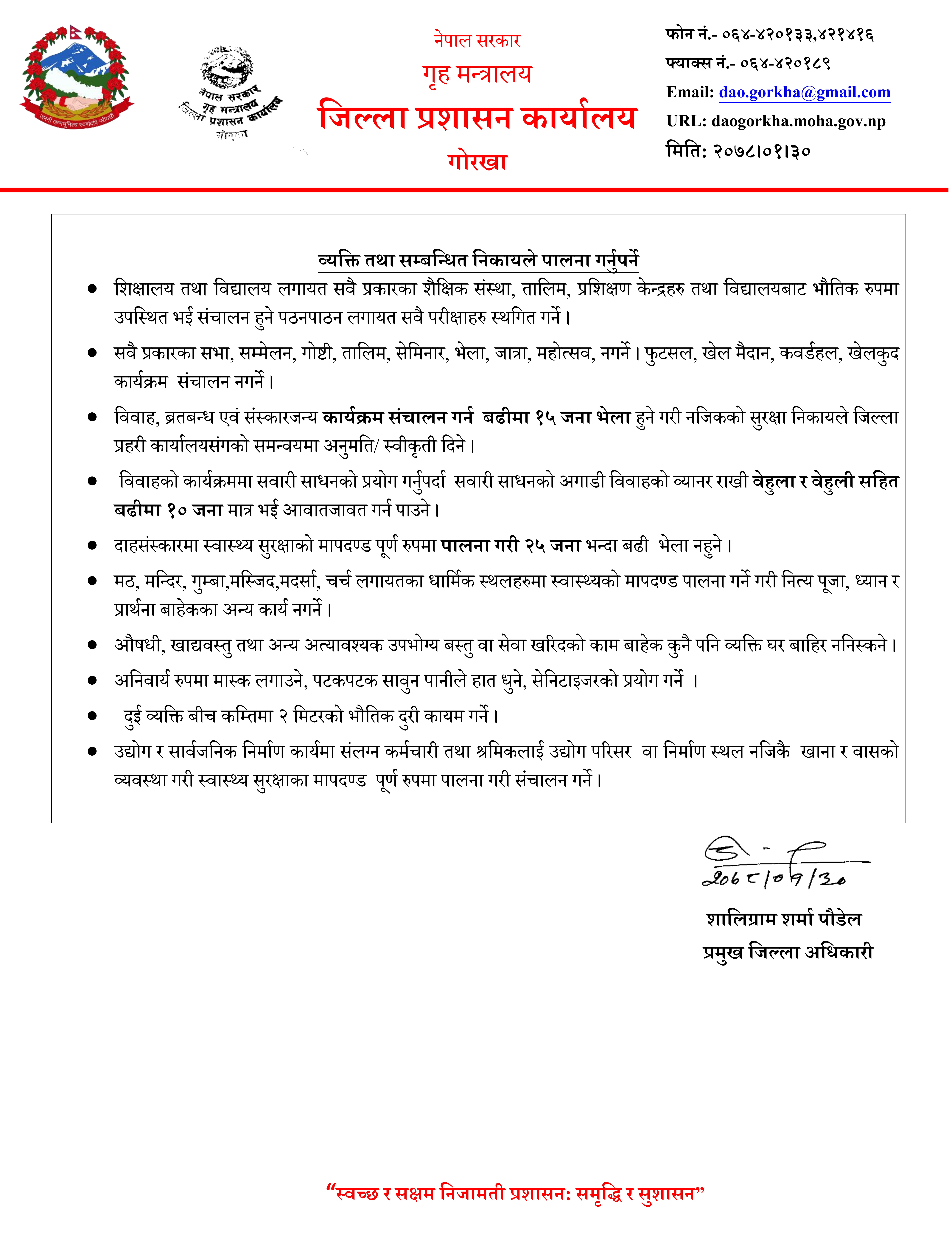 जिल्ला प्रशासन कार्यालय गाेरखाकाे पछिल्लाे सूचना