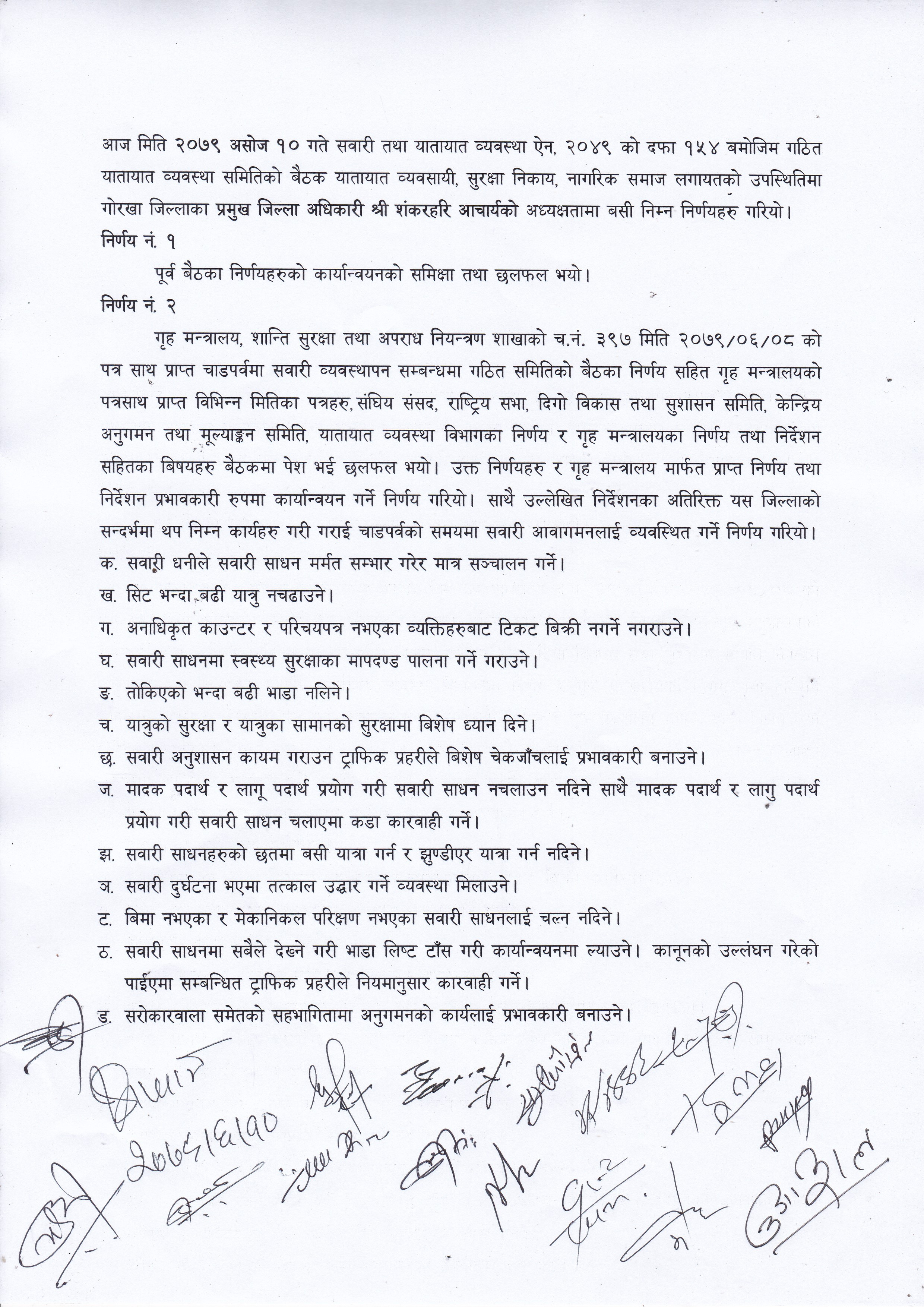 मिति २०७९-०६-१० गते बसेको चाडपर्वमा यातायात व्यवस्थापन सम्बन्धी बैठकका निर्णयहरु