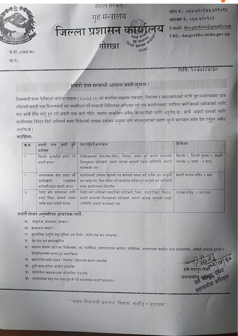 अत्यावश्यक सवारी पास जारी गर्ने कार्य पुनः सूचारू गरिएकाे