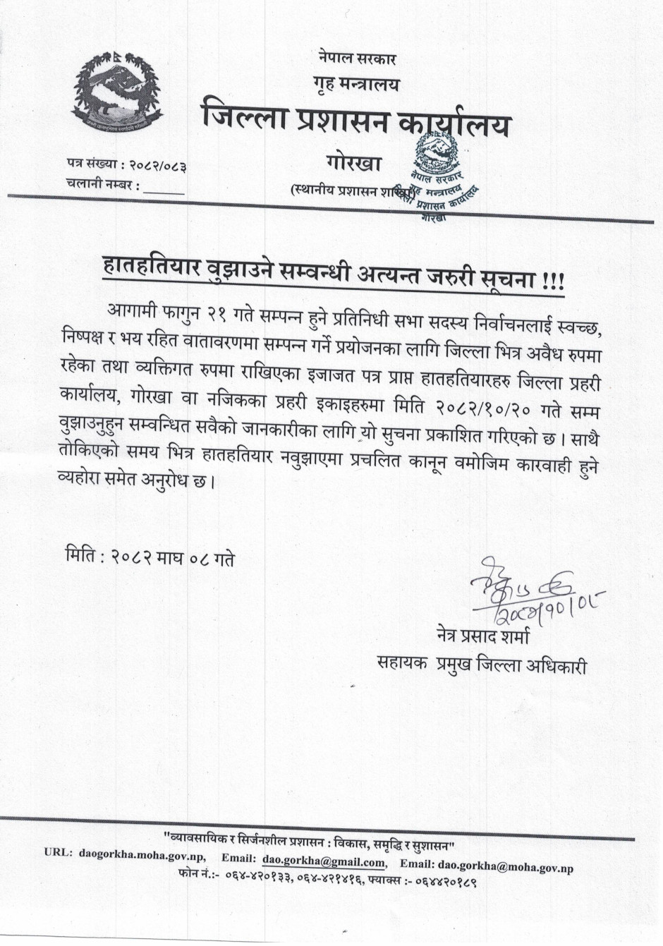 विपद पूर्व सतर्कता अपनाउने सम्वन्धमा जिल्ला प्रशासन कार्यालय, गोरखाबाट जारी भएको जरुरी सूचना !!!
