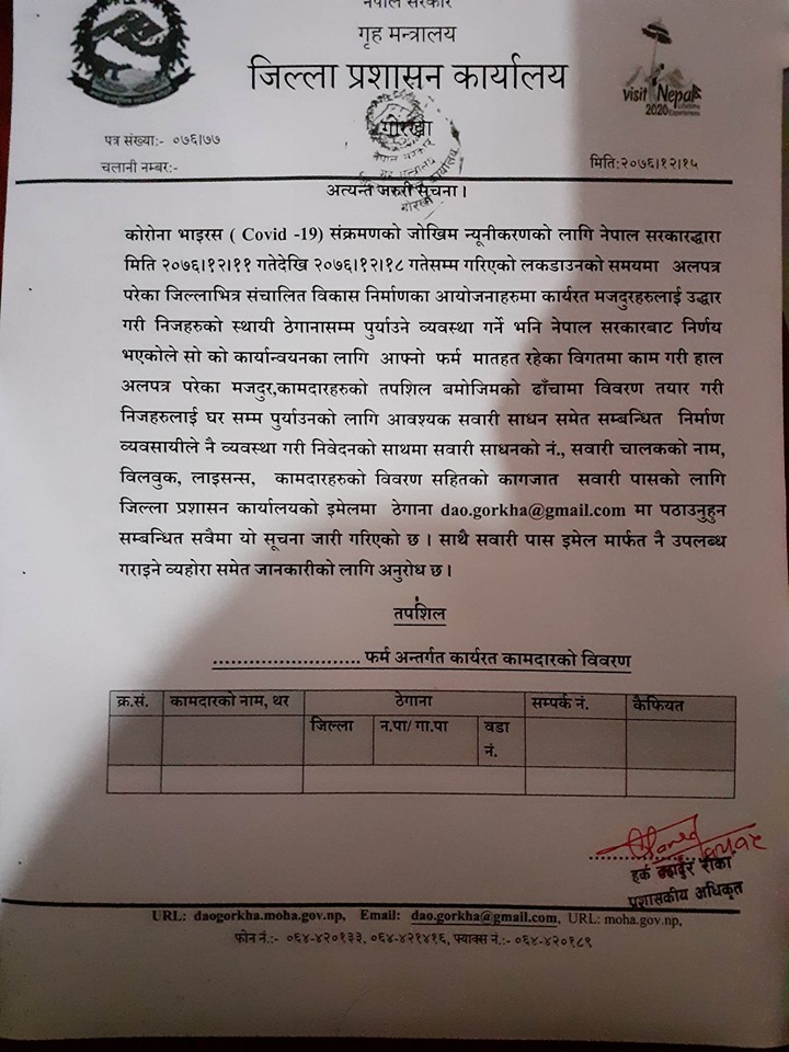 जिल्लाभित्र कार्यरत कामदारहरुसंग सम्बन्धित अत्यन्त जरुरी सूचना
