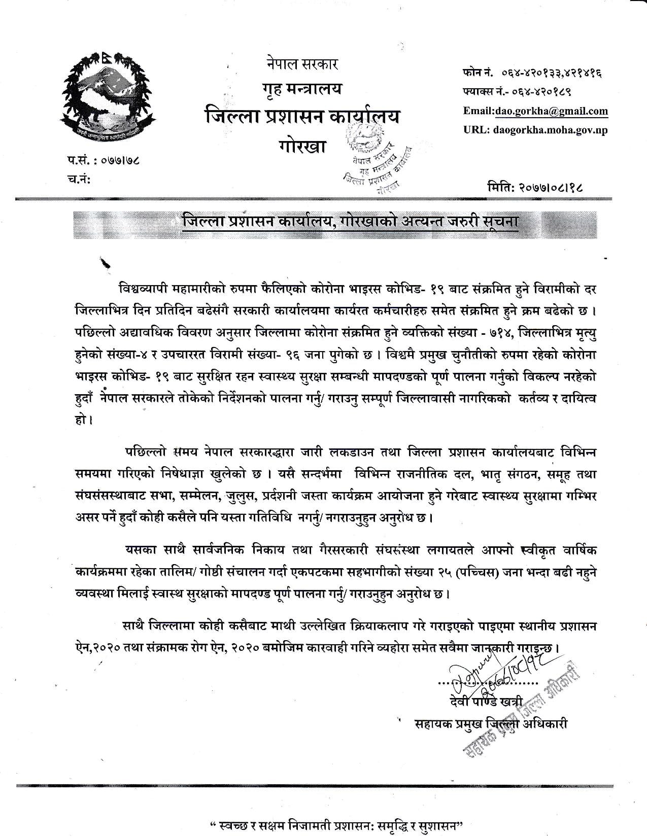 जिल्ला प्रशासन कार्यालय,गोरखाको अत्यन्त जरुरी सूचना