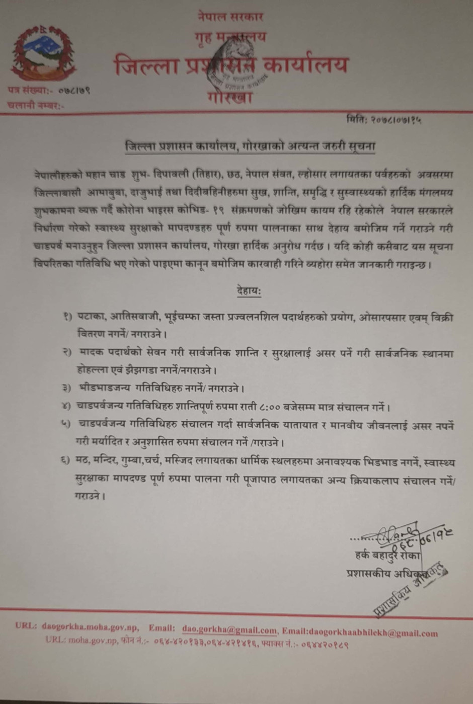 जिल्ला प्रशासन कार्यालय गाेरखाकाे अत्यन्त जरूरी सूचना