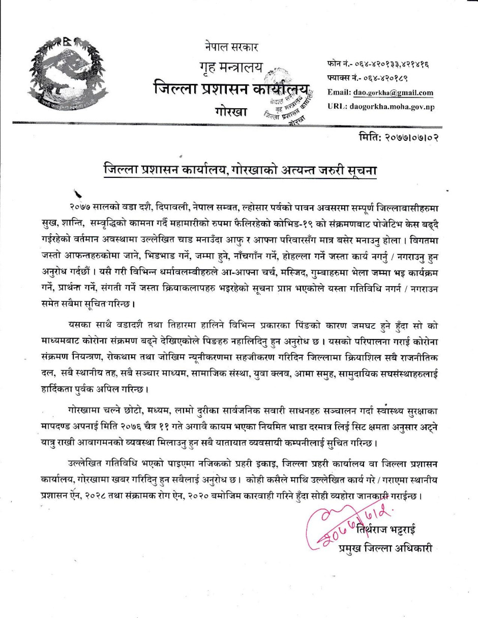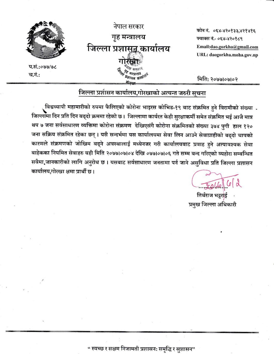 जिल्ला प्रशासन कार्यालय गोरखाका पछिल्ला सुचना