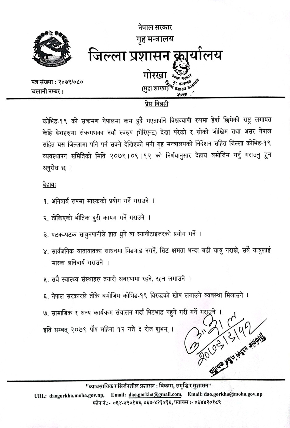 कोभिड-१९ को नयाँ स्वरुप (भेरियन्ट) सम्वन्धी DCMC को निर्णय २०७९/०९/१२