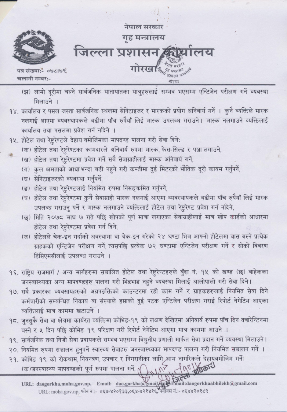 मिति २०७८-१०-०५ मा जिल्ला प्रशासन कार्यालय गोरखाबाट जारी आदेश ३