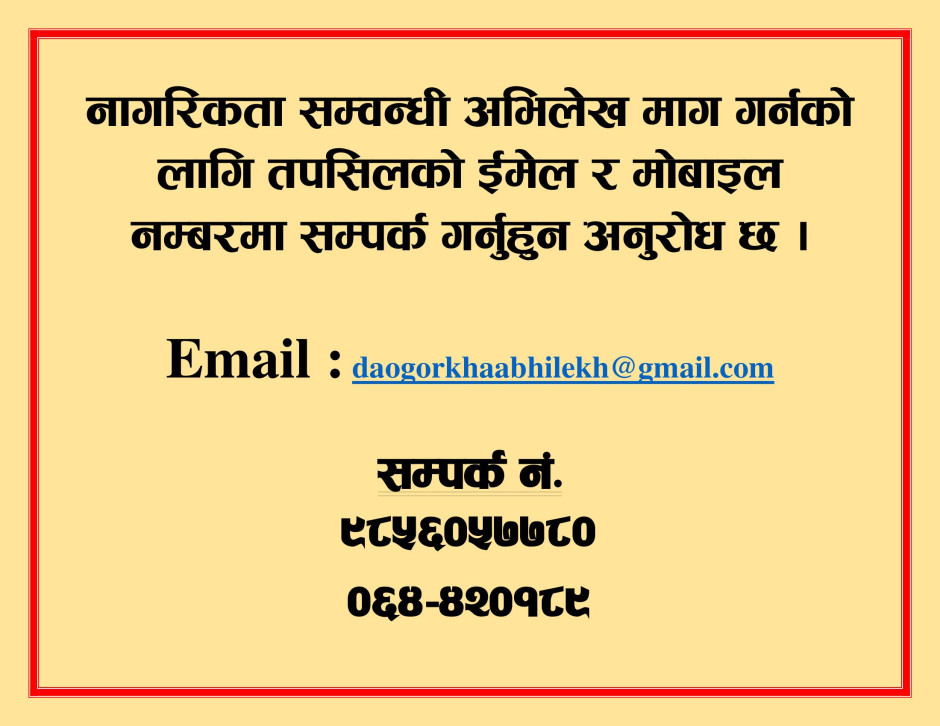 © सर्वाधिकार सुरक्षित जिल्ला प्रशासन कार्यालय, गाेरखा