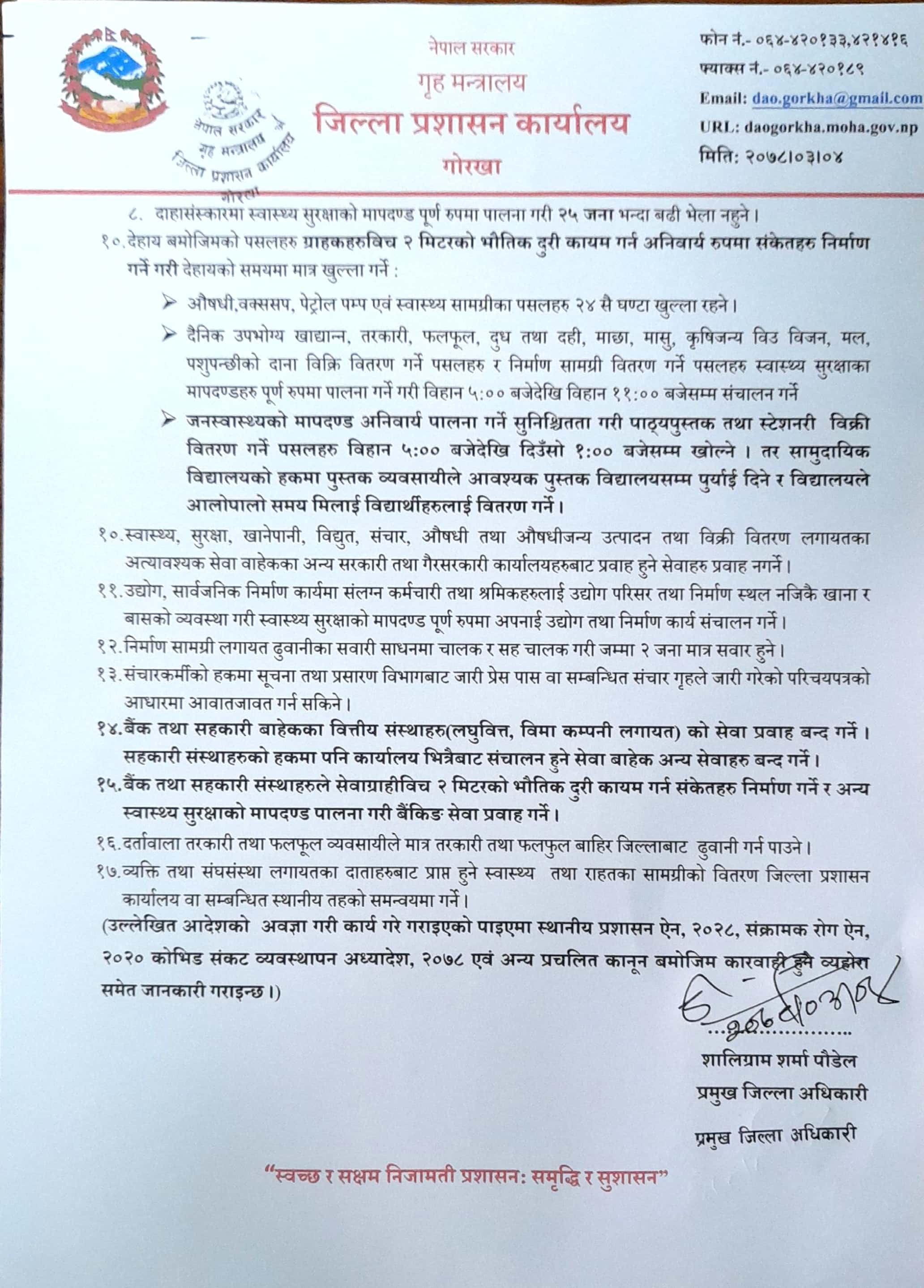 प्रमुख जिल्ला अधिकारीबाट जारी आदेश 2078.03.04
