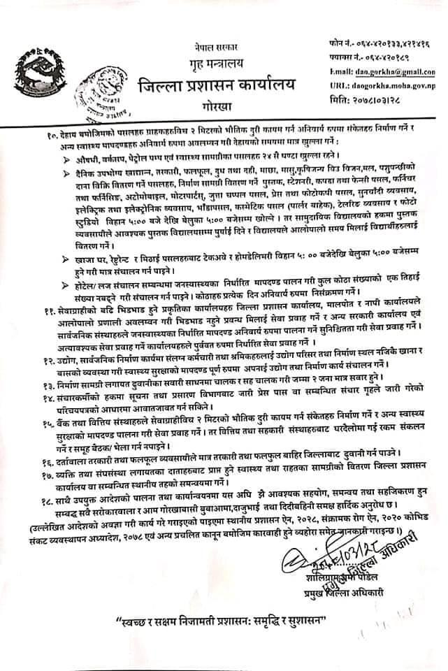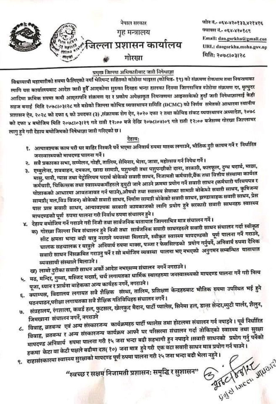 प्रमुख जिल्ला अधिकारीबाट जारी निषेधाज्ञाको आदेश( २०७८।०३।२८)