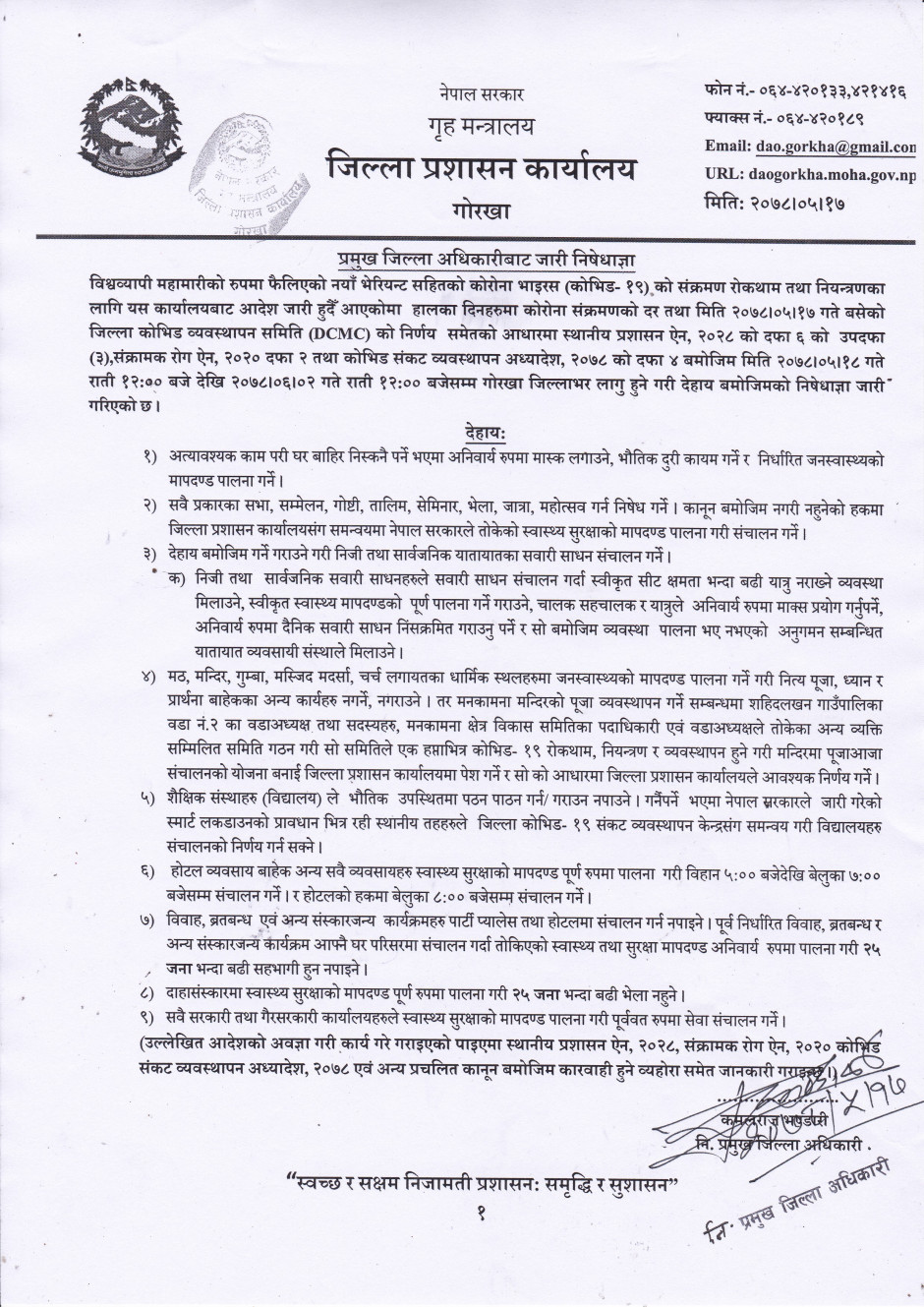 प्रमुख जिल्ला अधिकारीबाट जारी निषेधाज्ञाको आदेश( २०७८।०५।१७)