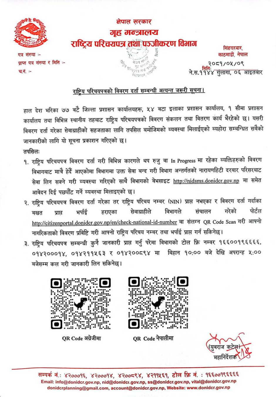 राष्ट्रिय परिचयपत्रको विवरण दर्ता सम्वन्धी सूचना ।।।