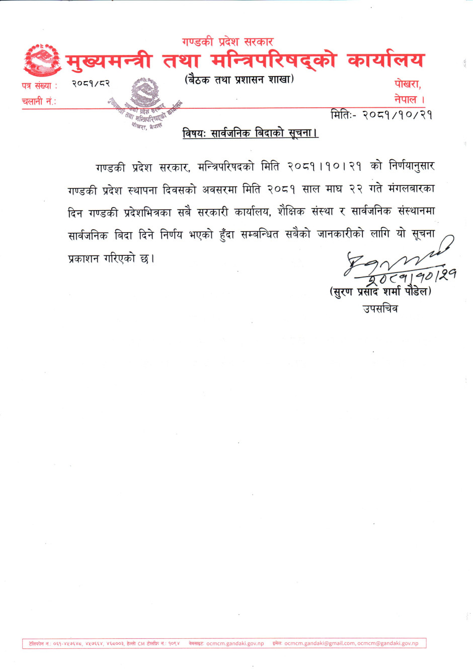 सार्वजनिक विदाको सूचना