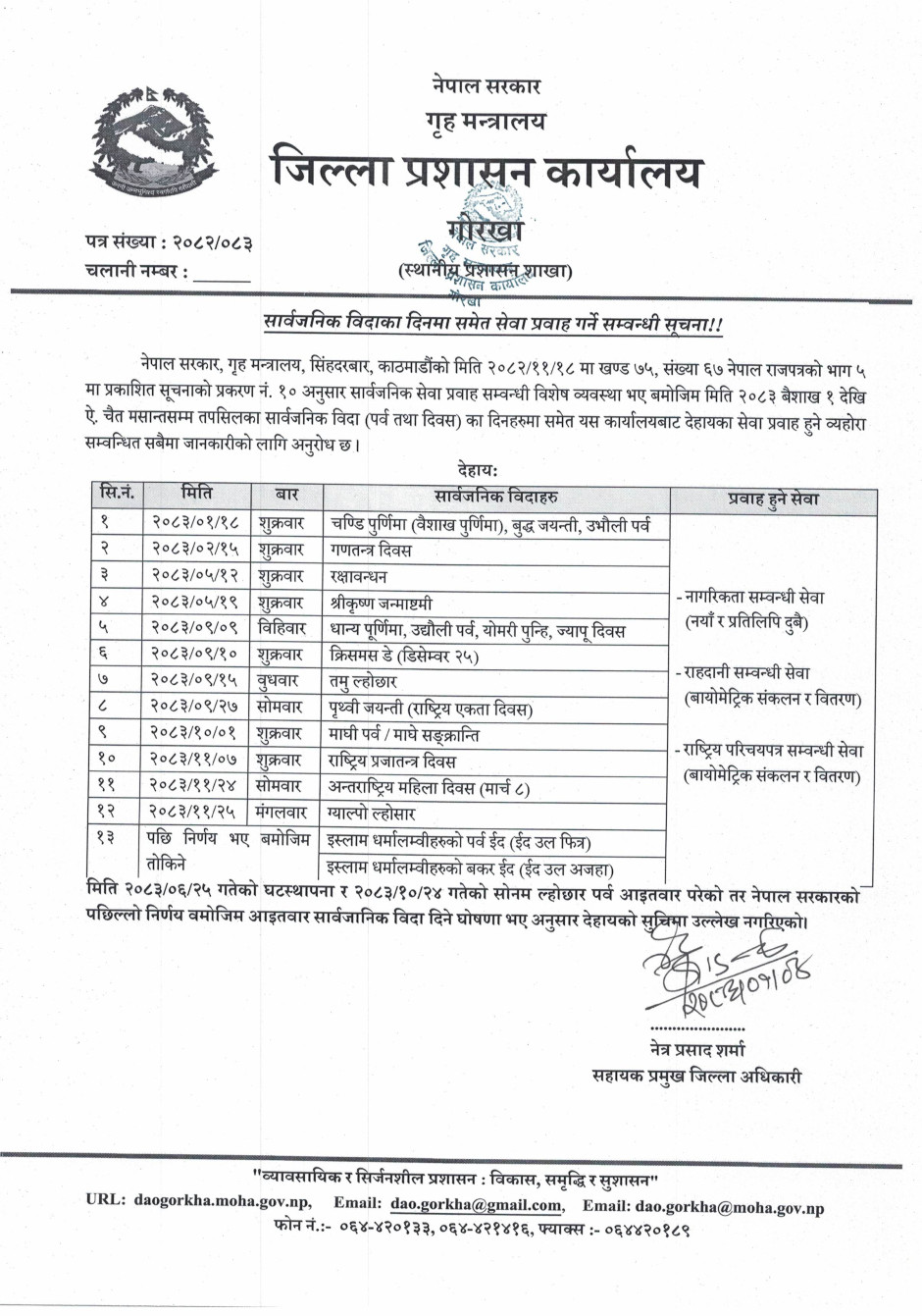 २०८२ सालमा गण्डकी प्रदेश सरकारबाट दिईने बिदा राजपत्र