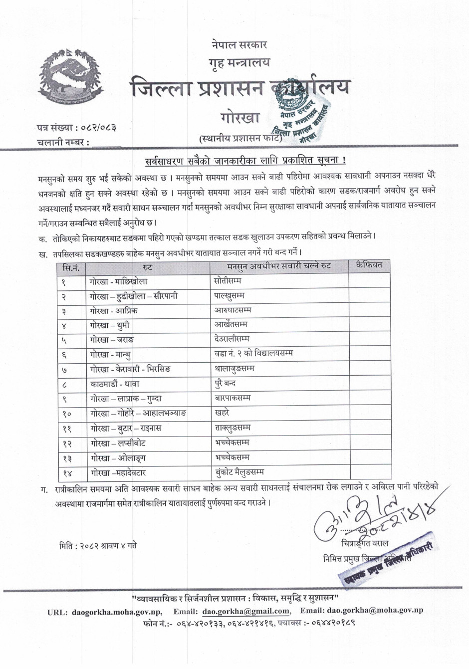 विपद पूर्व सतर्कता अपनाउने सम्वन्धमा जिल्ला प्रशासन कार्यालय, गोरखाबाट जारी भएको जरुरी सूचना !!!