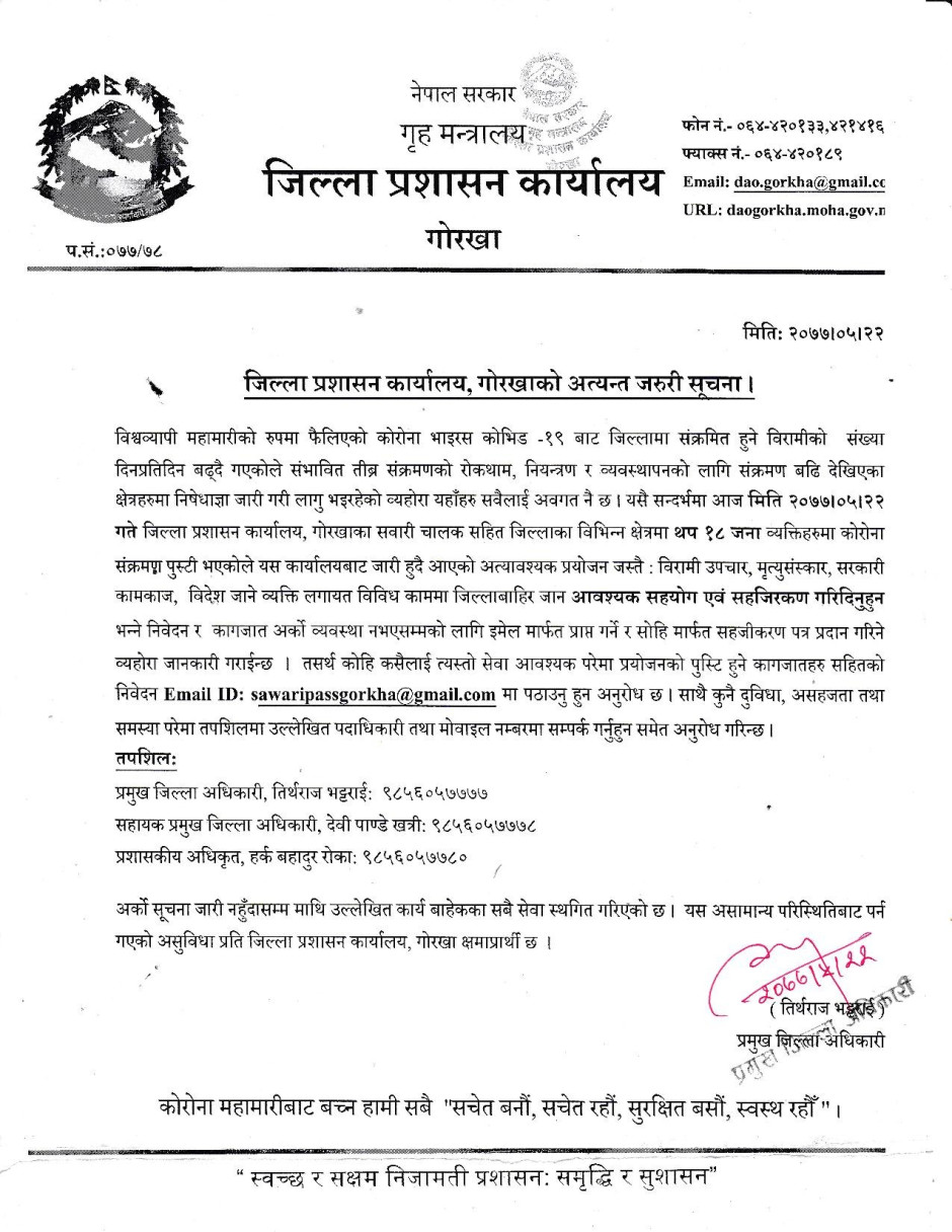 सवारी पासकाे लागि नयाँ इमेल ठेगाना साथै अन्य सेवा बन्द गरिएकाे सम्बन्धी सूचना