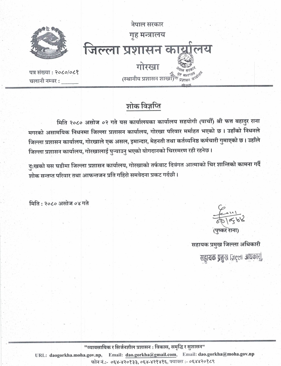 © सर्वाधिकार सुरक्षित जिल्ला प्रशासन कार्यालय, गाेरखा