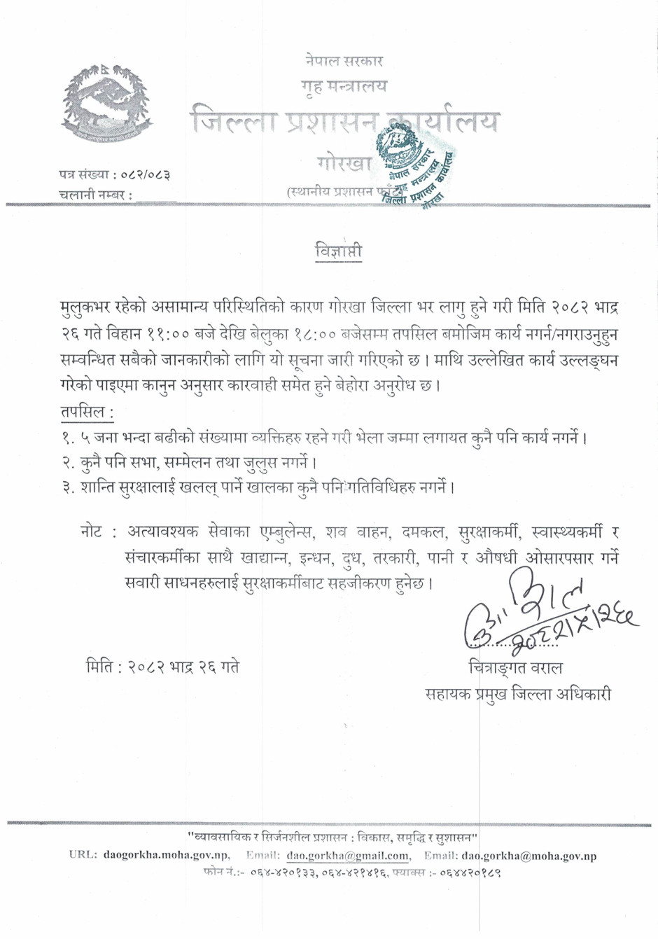 विपद पूर्व सतर्कता अपनाउने सम्वन्धमा जिल्ला प्रशासन कार्यालय, गोरखाबाट जारी भएको जरुरी सूचना !!!