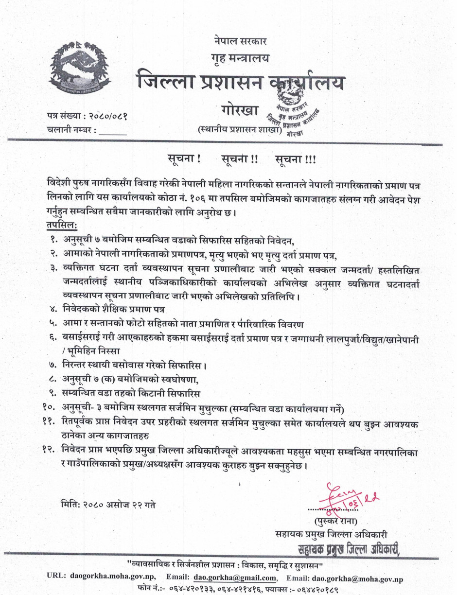 विपद पूर्व सतर्कता अपनाउने सम्वन्धमा जिल्ला प्रशासन कार्यालय, गोरखाबाट जारी भएको जरुरी सूचना !!!