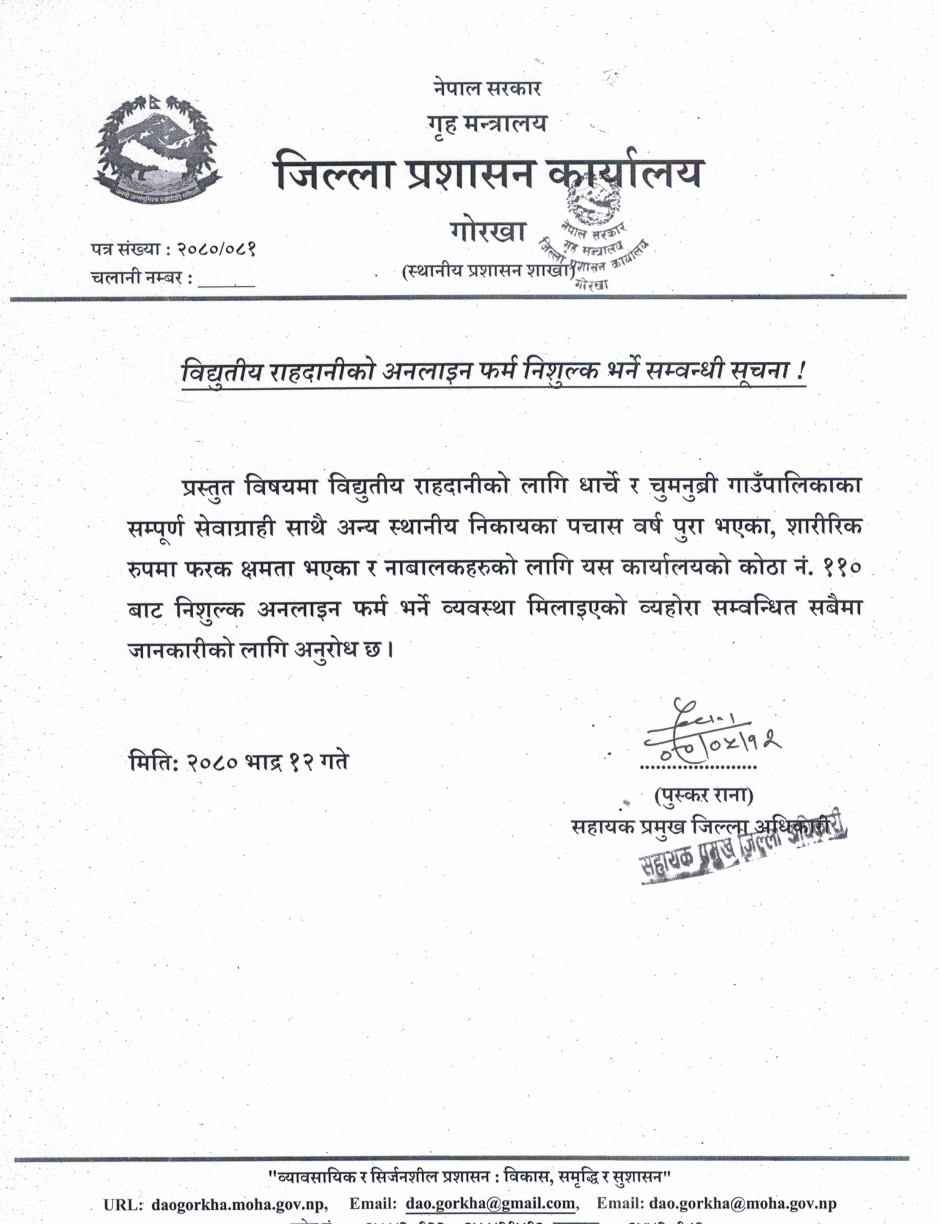 © सर्वाधिकार सुरक्षित जिल्ला प्रशासन कार्यालय, गाेरखा