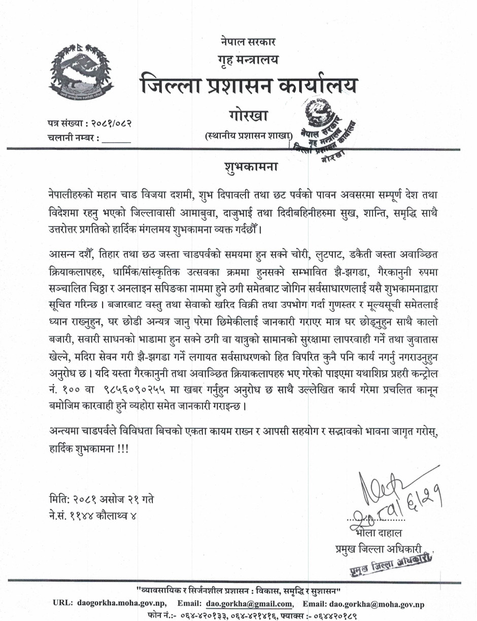 © सर्वाधिकार सुरक्षित जिल्ला प्रशासन कार्यालय, गाेरखा